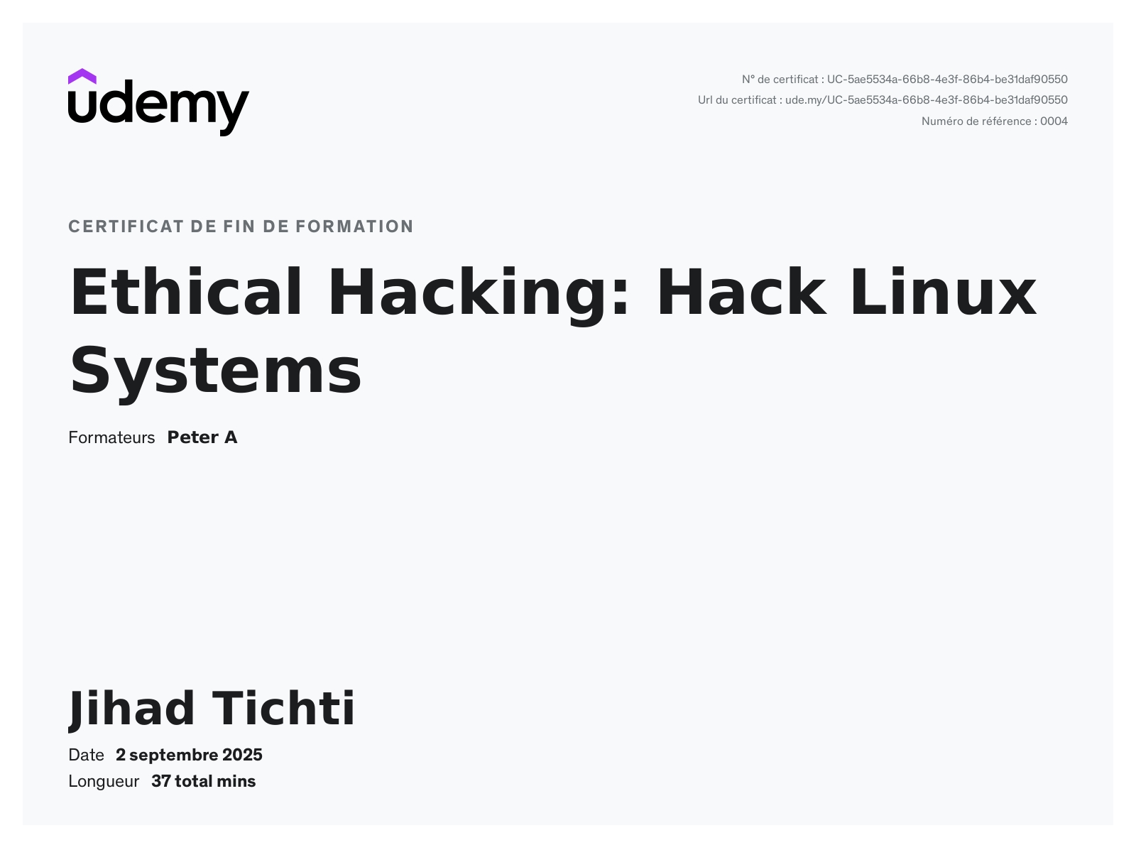 I’m Jihad TICHTI, a student in Applied Computer Science at the Faculty of Sciences, Rabat, passionate about cybersecurity and eager to gain hands-on experience through internships or entry-level roles. I have advanced skills in C programming, as well as experience in digital electronics, data security, HTML/CSS/JS, and signal processing. I’ve completed multiple certifications in ethical hacking, Linux security, and web app security. I’m highly motivated to learn, solve problems, and grow within the tech field.